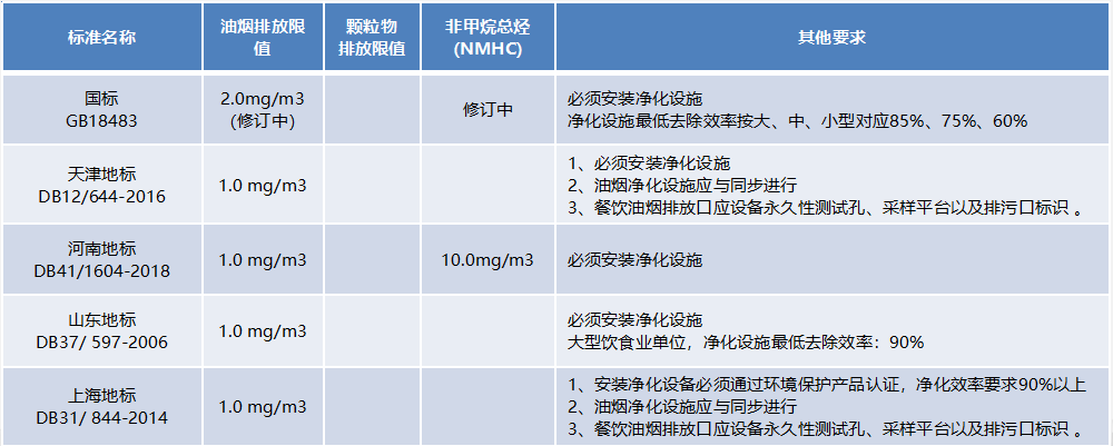 新興榮福收集各地《飲食業油煙排放標準》中對油煙排放濃度的規定: