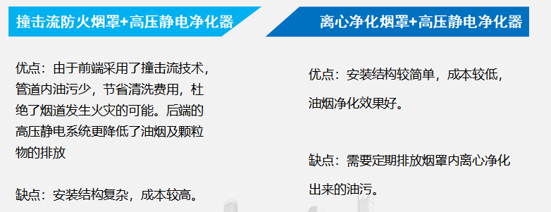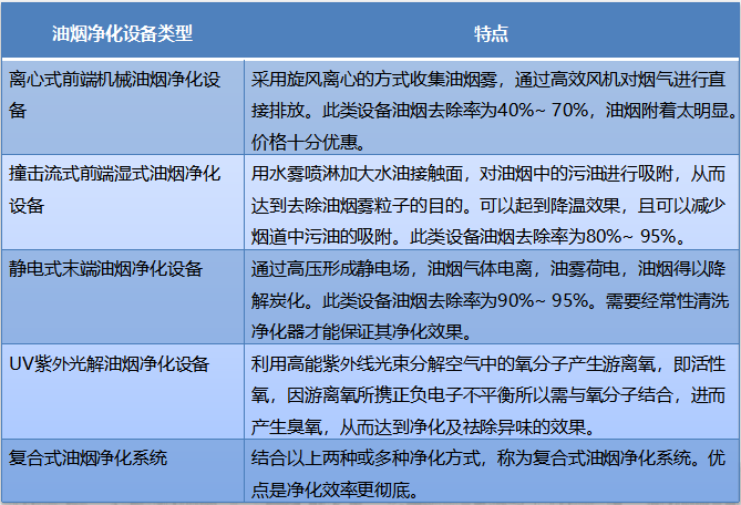 各標準已明確規定,必須安裝油煙凈化設備。新興榮福收集現行市場上的油煙凈化方式,主要分以下幾種:離心式前端機械油煙凈化設備、撞擊流式前端濕式油煙凈化設備、靜電式末端油煙凈化設備、UV紫外光解體油煙凈化設備和復合式油煙凈化系統。這幾類凈化系統各有優勢,新興榮福為大家簡單介紹一下: