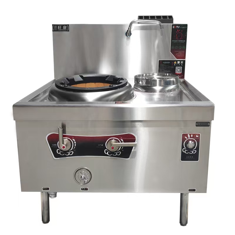 (2)爐外結(jié)構(gòu)選用優(yōu)質(zhì)不銹鋼板,上設優(yōu)質(zhì)搖擺水龍頭,可配置炸筐架及不銹鋼調(diào)料板,并可根據(jù)需要訂做,可設計自然風式。