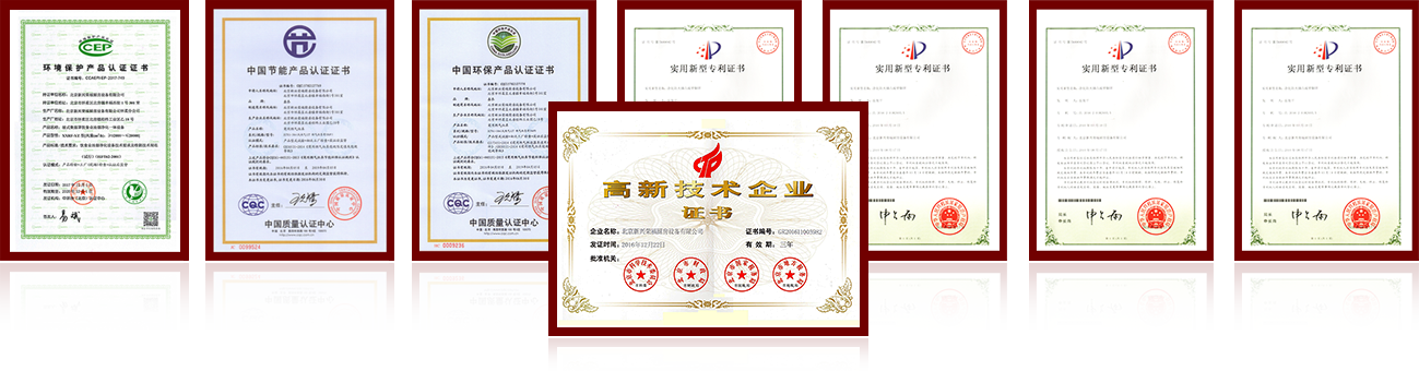 雄厚的企業實力和科學完善的質量體系是產品品質的保證!新興榮福先后取得:CEP環保認證、中國節能產品認證、中國環保產品認證、北京市高新技術企業認證和若干新型專利證書。+了解更多